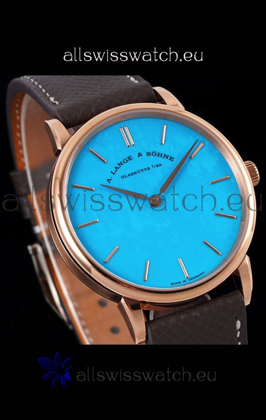 A.Lange & Sohne Saxonia Thin Swiss Replica Watch Rose Gold Case Tiffany Blue Dial
