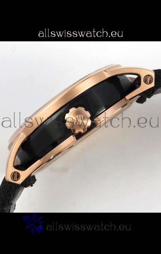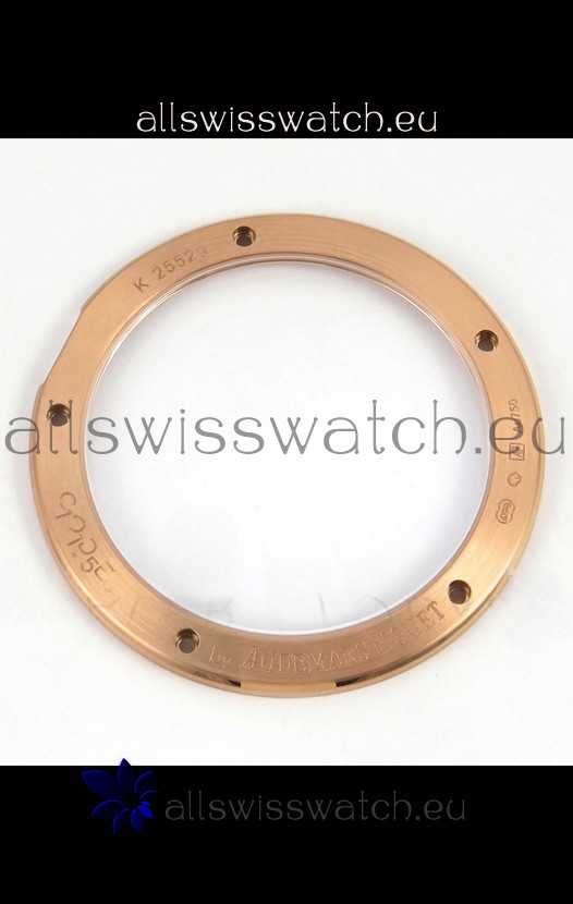 18K Rose Gold Plating on 904L Stainless Steel Casing with Audemars Piguet Markings and Engravings