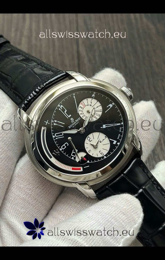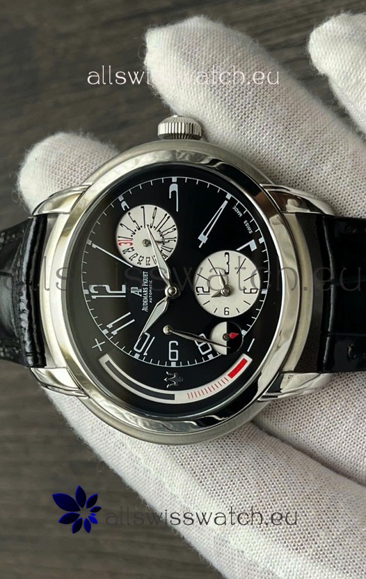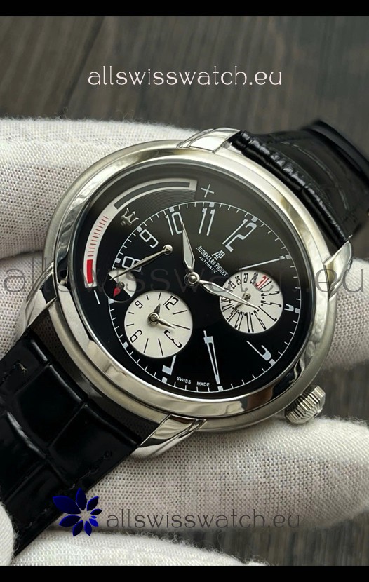Black Dial with Functional Date Indicator, 12/24 Hours Counter and Power Reserve Indicators