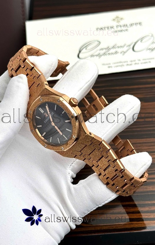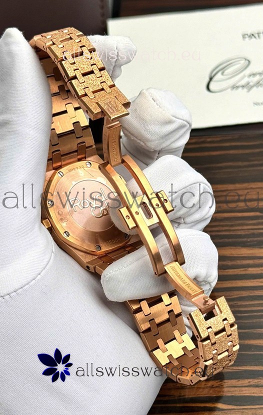 Rose Gold Plating on 904L Stainless Steel Strap completed with AP Markings and Engravings as per the originals and AP Folding Clasp