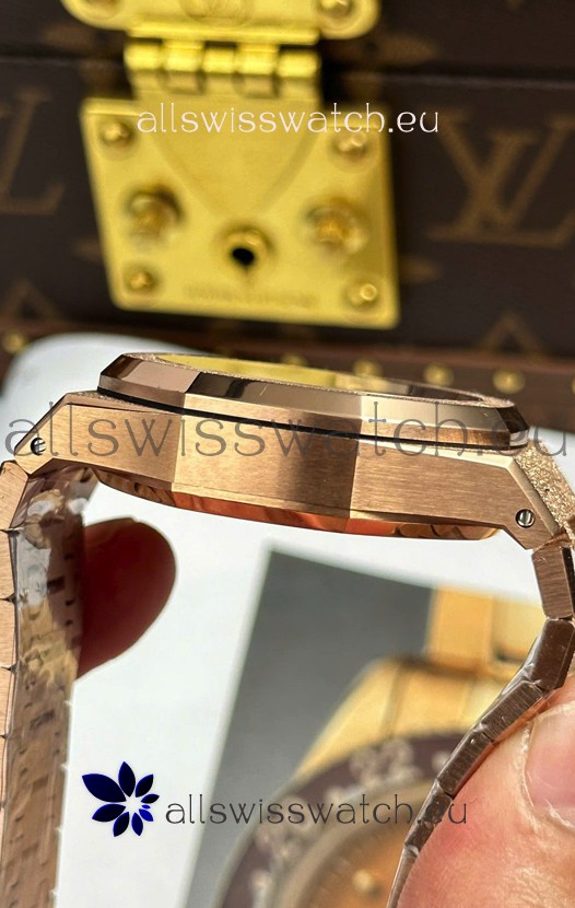 Frosted Rose Gold Plating on 904L Steel Case Complete with AP MArkings and Engravings.