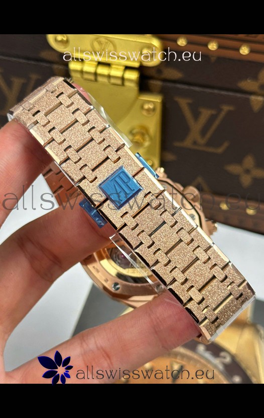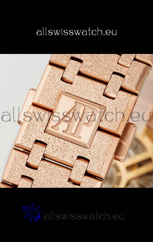 Frosted Rose Gold Plating on 904L Stainless Steel Strap completed with AP Markings and Engravings as per the originals and AP Folding Clasp