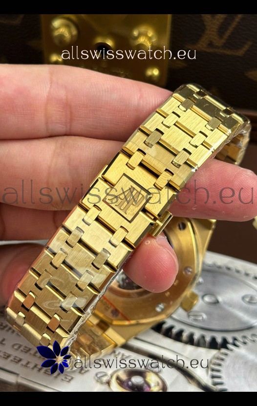 18K Yellow Gold Platign on 904L Stainless Steel Strap linked with Screws complete with AP Markings and Engravings