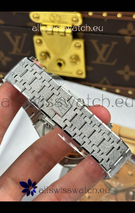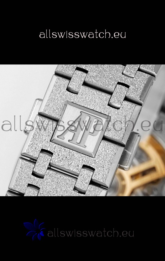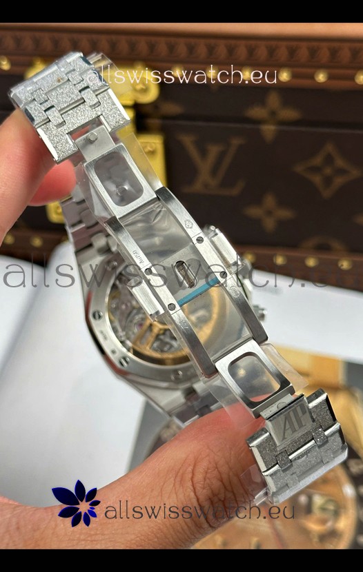 Frosted White Gold Plating on 904L Stainless Steel Strap completed with AP Markings and Engravings as per the originals and AP Folding Clasp