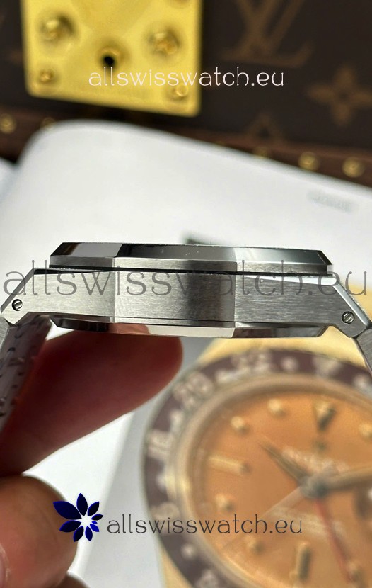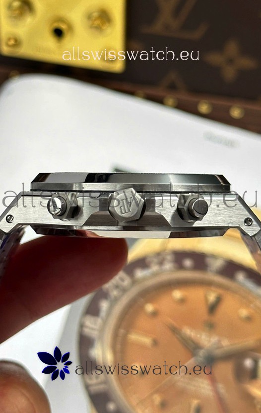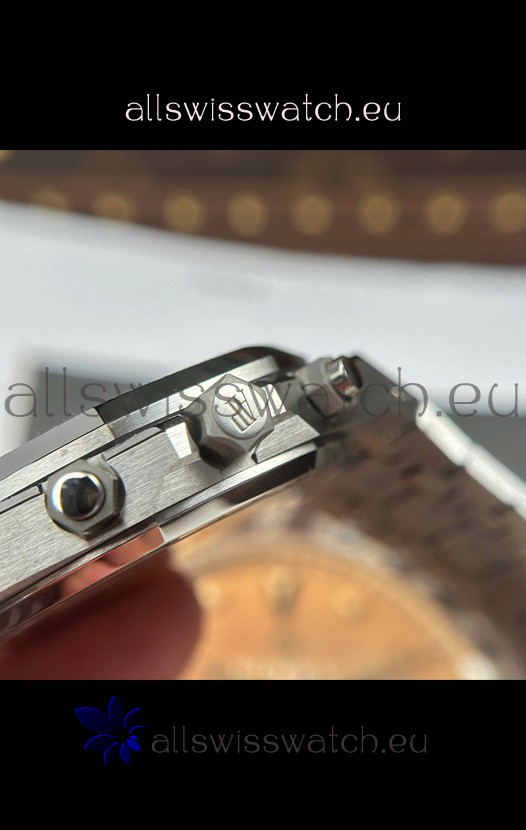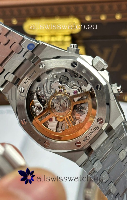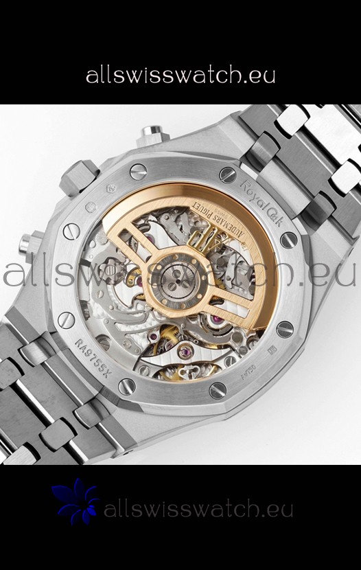 Machinery Layout exactly like Audemars Piguet 4401 Calibre Movement used in Authentic Audemars Piguet Offshore Watches. Built on Genuine Swiss 7753 Movement architecture with Functional stopwatch feature like the authentic with Seconds hand running at the 12 o clock Sub Dial