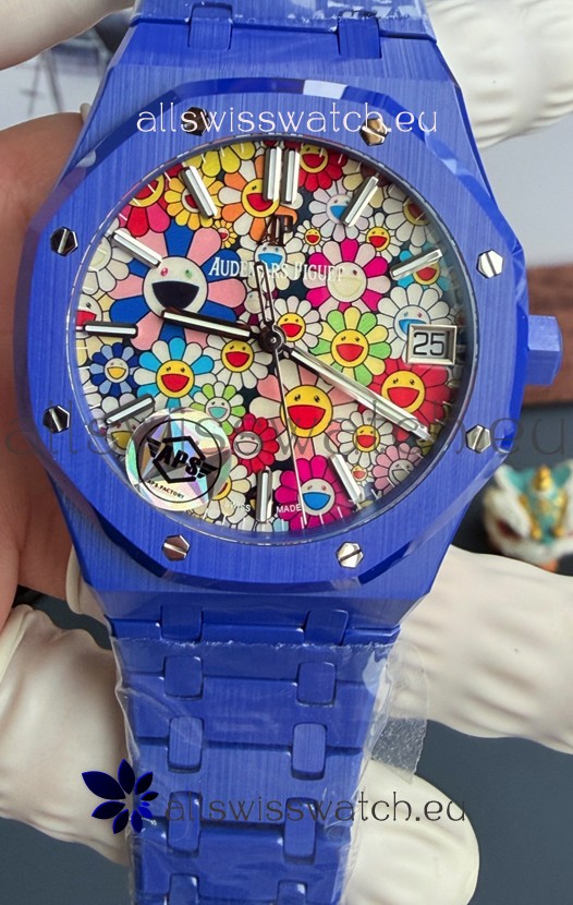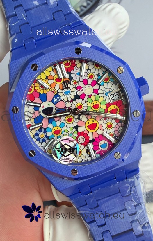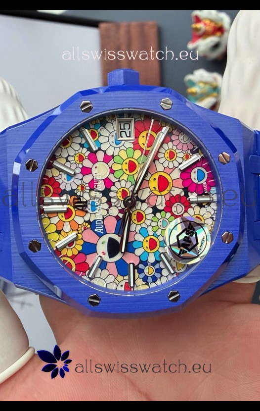 Audemars Piguet Super Clone Royal Oak Blue Ceramic Watch in Sun-Flower Dial