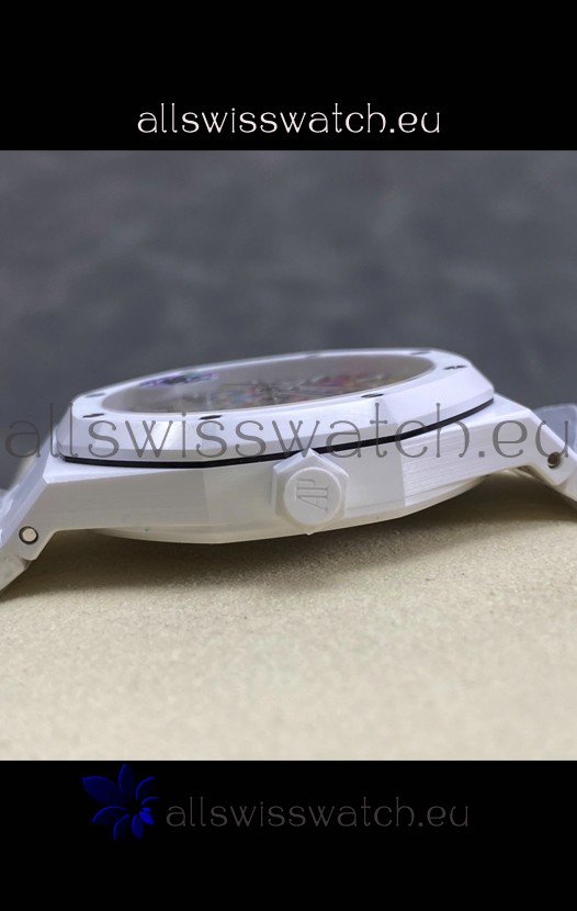 Audemars Piguet Super Clone Royal Oak White Ceramic Watch in Sun-Flower Dial