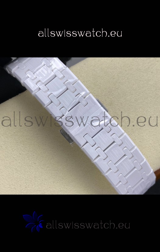 Lightweight White Ceramic Strap with smooth edges with AP Folding Clasp complete with AP Markings and Engravings