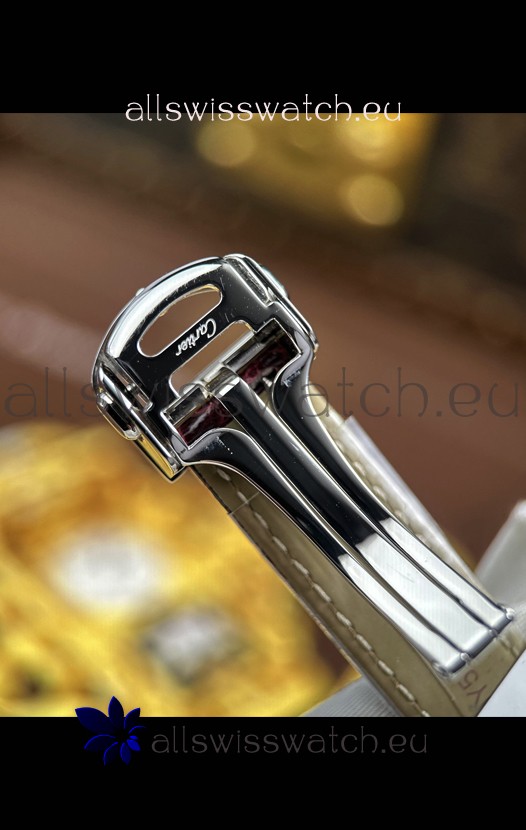 Genuine Leather Strap with Cartier Markings/Engravings and Double Folding Clasp