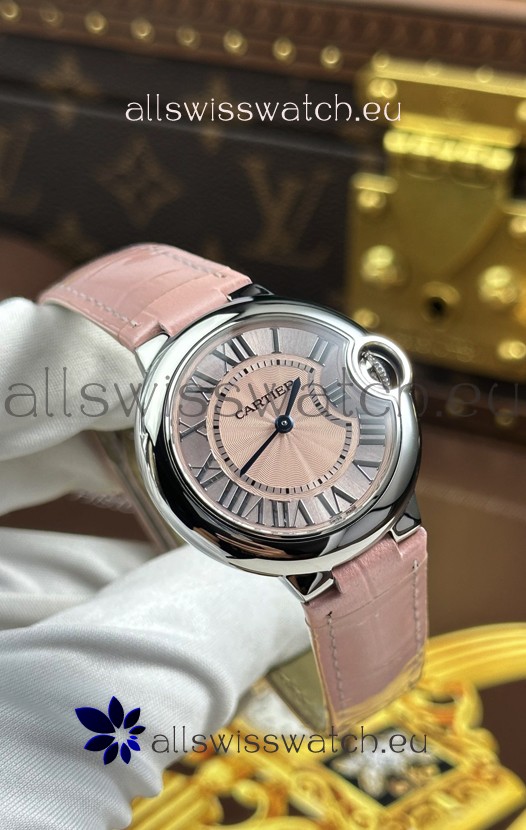 Ballon De Cartier Swiss Quartz 1:1 Mirror Quality 33MM in Pink Dial