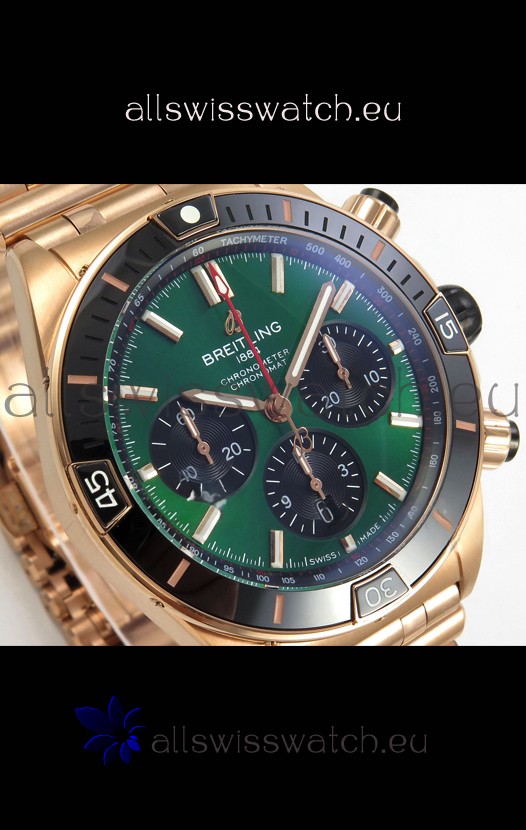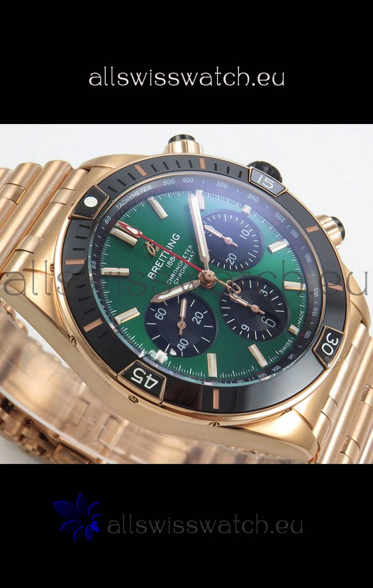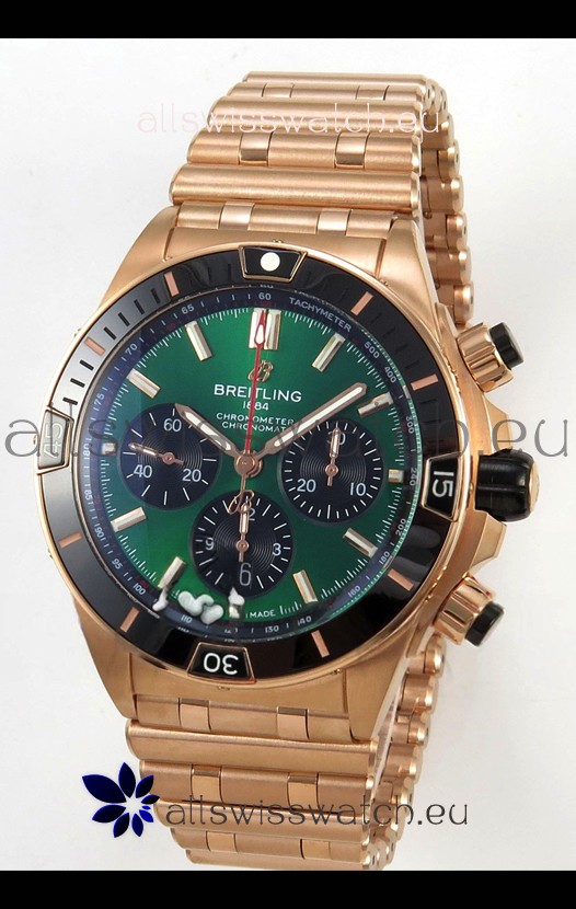 Breitling Chronomat Super Clone B01 42 Edition Swiss 904L Rose Gold Casing Green Dial