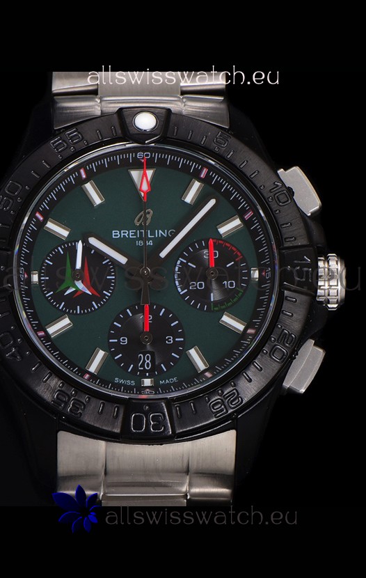 DLC Coating on 904L Steel Case complete with Breitling markings and Details as per the originals.
