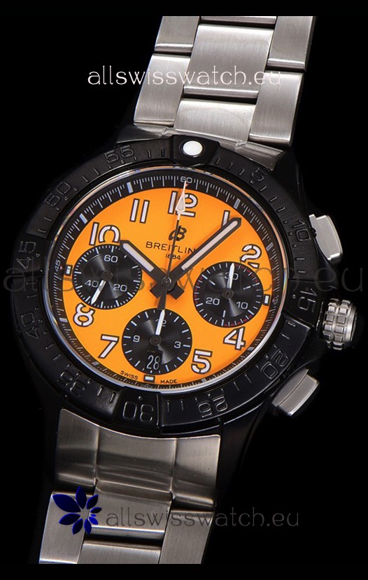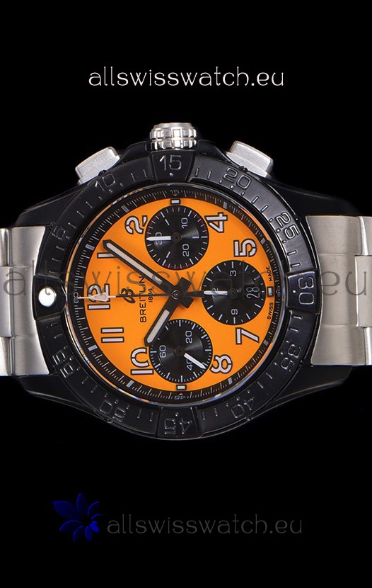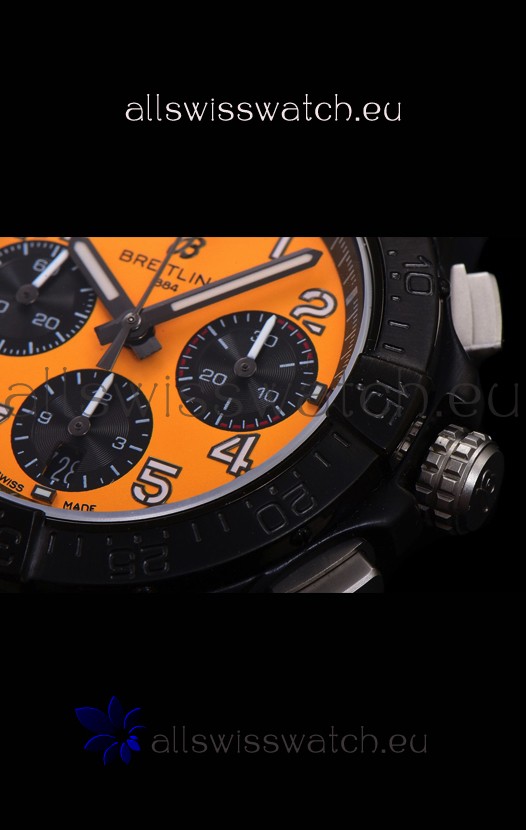 DLC Coating on 904L Steel Case complete with Breitling markings and Details as per the originals.