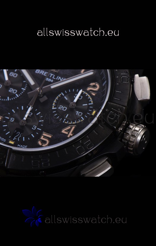DLC Coating on 904L Steel Case complete with Breitling markings and Details as per the originals.