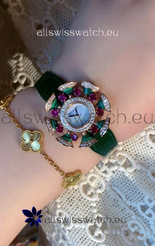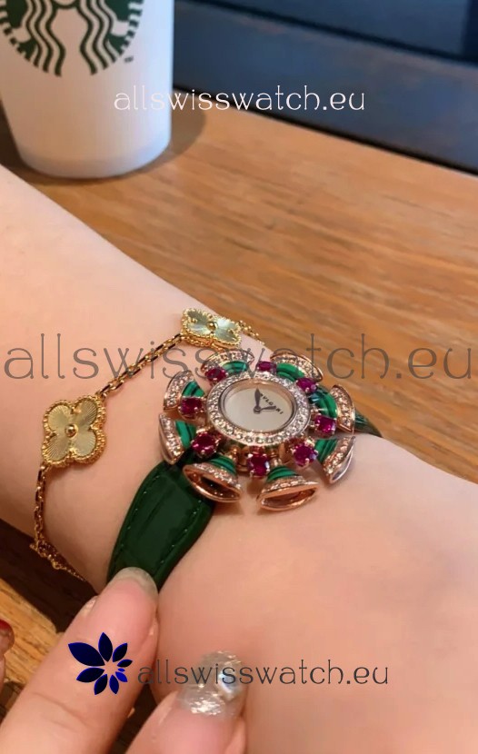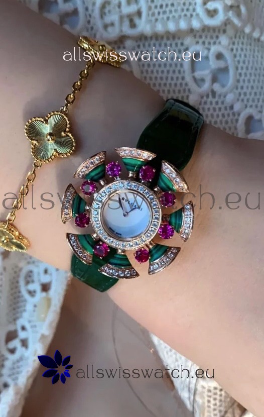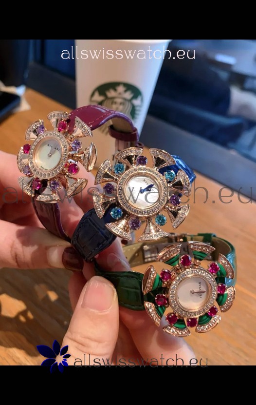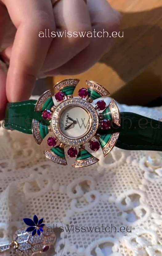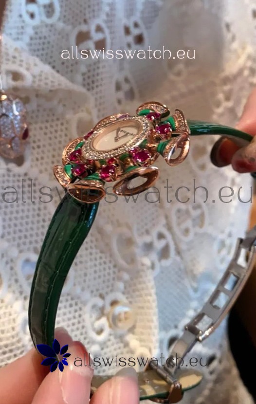 Bvlgari Divas's Dream Edition Watch in Rose Gold Casing - Diamonds Paved Bezel Swiss Replica