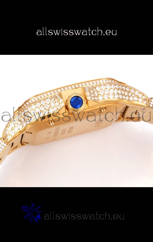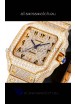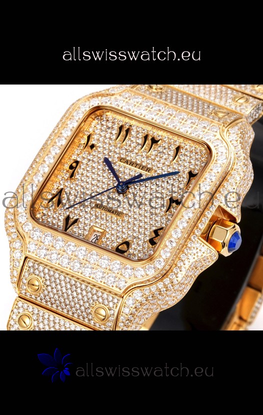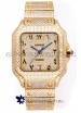 Cartier "Santos De Cartier" Yellow Gold W/ Diamonds Arabic Dial 1:1 Mirror Replica - 40MM - Genuine Diamonds