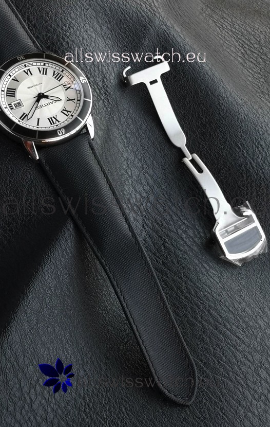 Hybrid Nylon/Leather Strap with Cartier Folding Clasps complete with Cartier Markings and Engravings