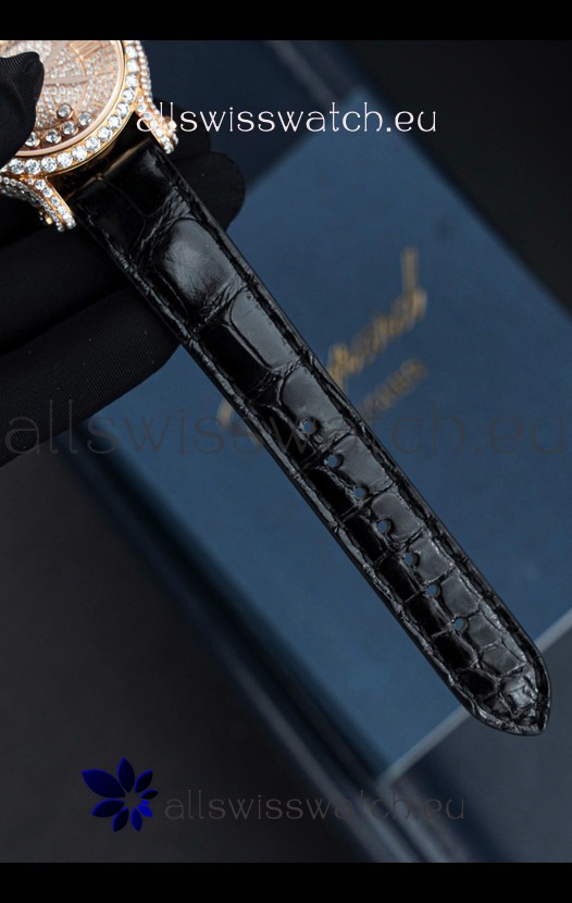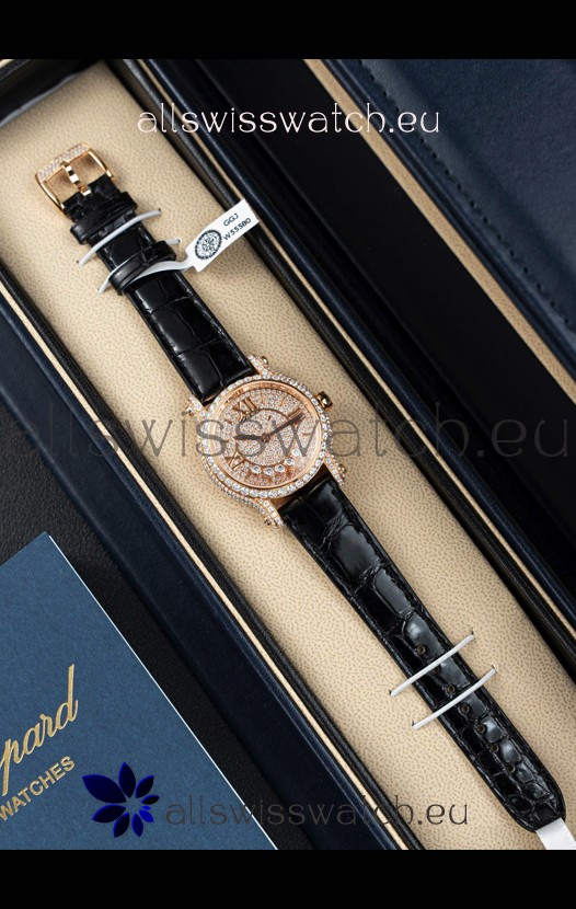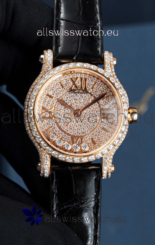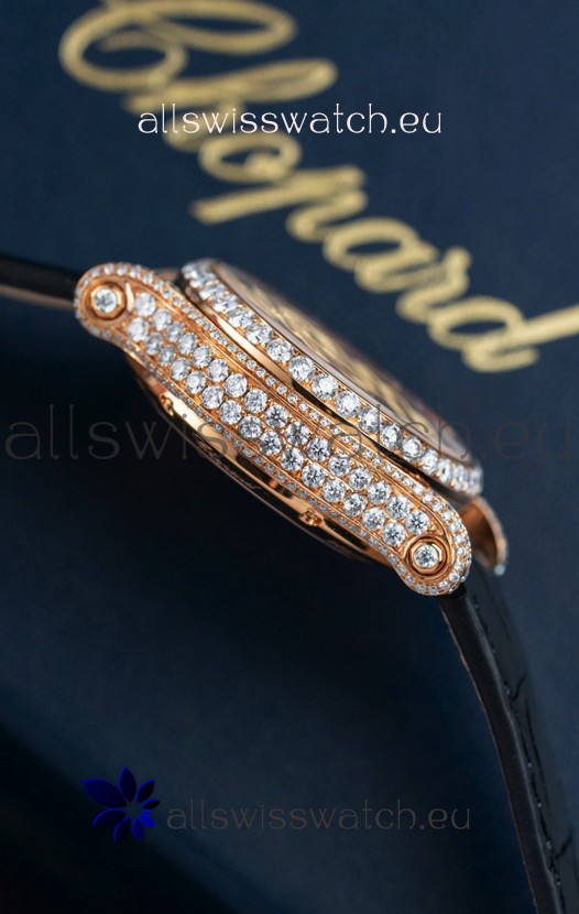 18K Rose Gold Plating on 904L Stainless Steel Casing with complete with Chopard Markings as per the Originals.