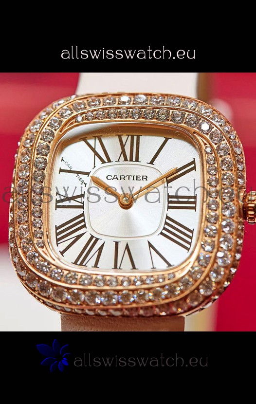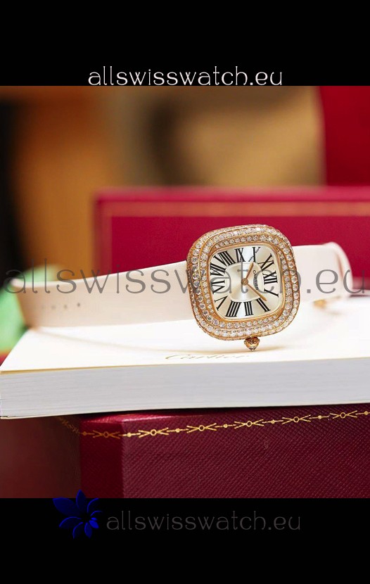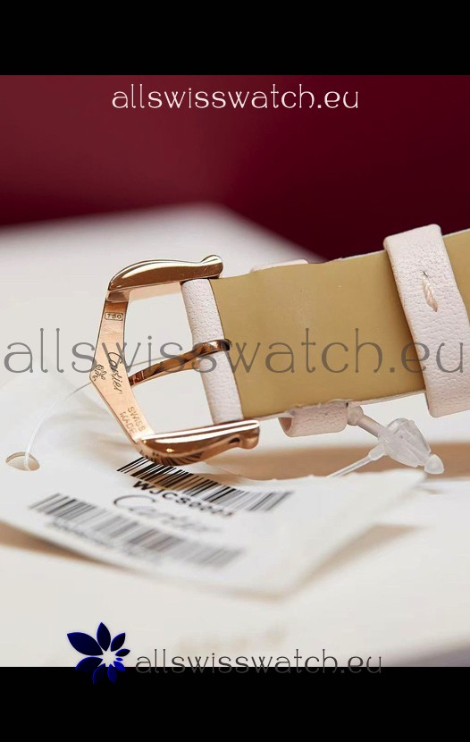 Coussin De Cartier Rose Gold Swiss Replica Watch White Strap