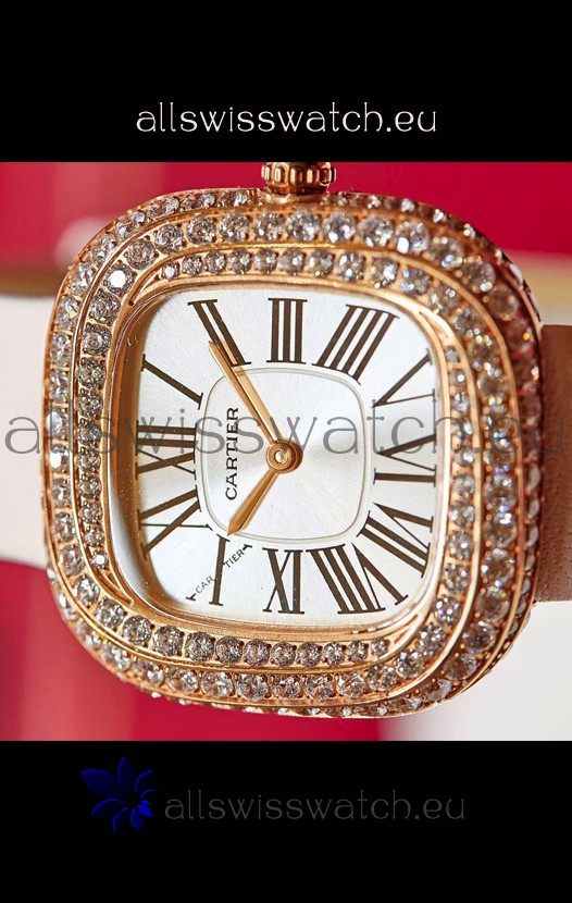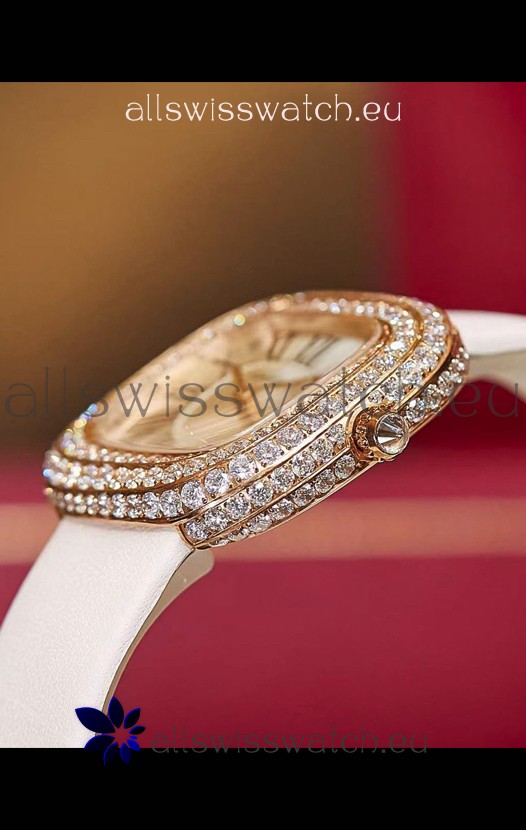 18K Rose Gold Plating on 904L Stainless Steel Case with solid Case back complete with Cartier Markings and Engravings