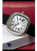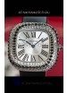 White Steel Dial with Roman Hour Numerals. Swiss Cut Diamonds Bezel