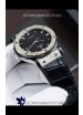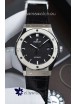Hybrid Leather/Rubber Strap with Stainless Steel Folding Clasp complete with Hublot Markings and Engravings.