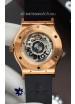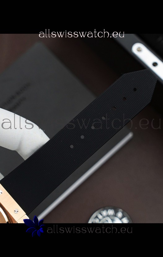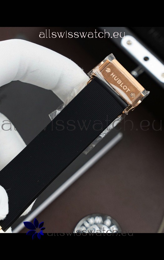 Rubber Strap with Rose Gold Folding Clasp complete with Hublot Markings and Engravings.