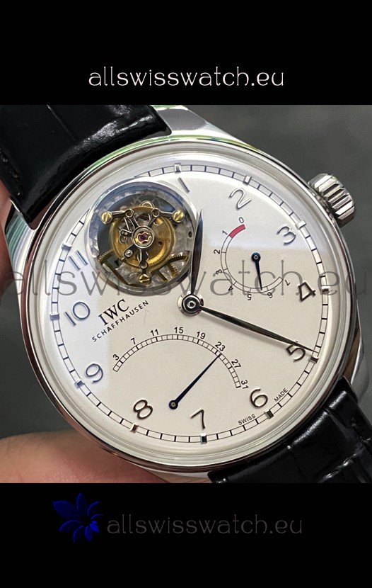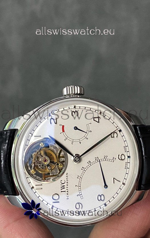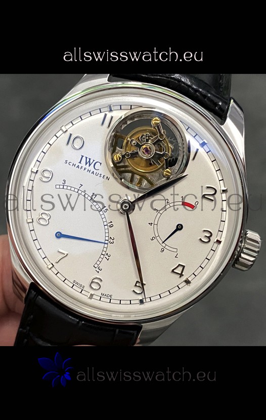 IWC Portuguese Genuine Swiss Tourbillon Movement Steel Watch in White Dial