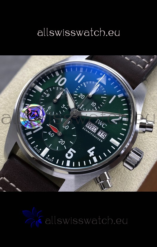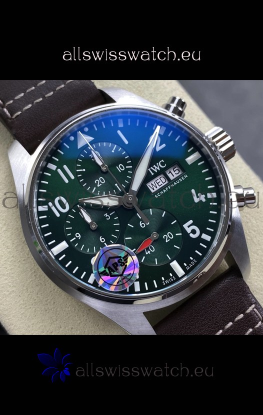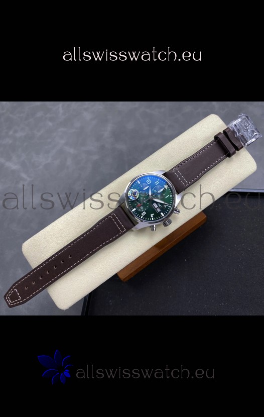 IWC Super Clone Pilot Chronograph Edition Green Dial Leather Swiss Replica Watch