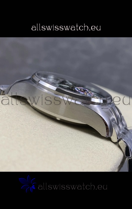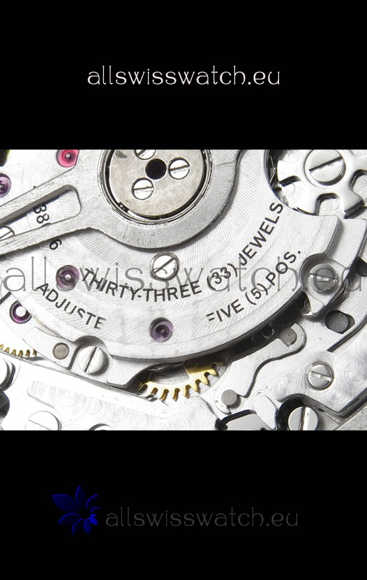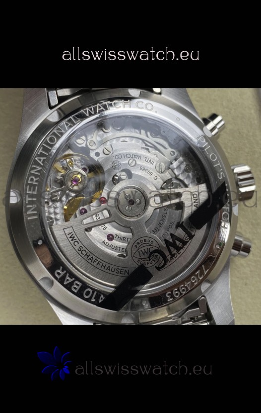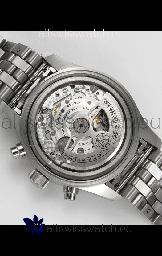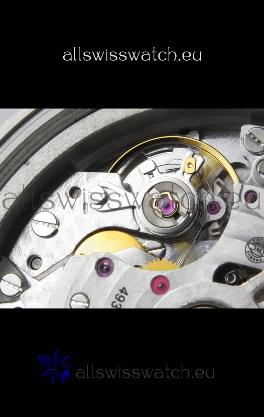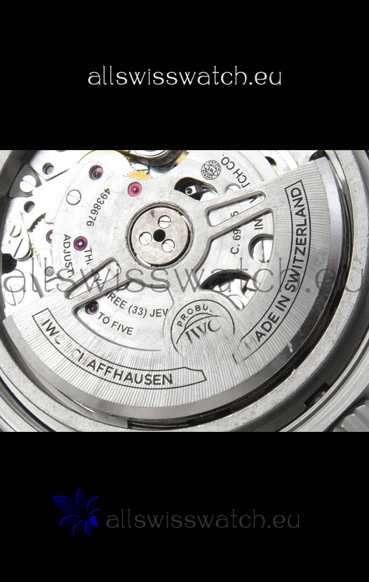 Base 7750 Movement Modified to Resemble the IWC 69385 Movement. Platinum Decodated Plate and Rotors. The Most Identical Machinery setup when compared with the Originals.