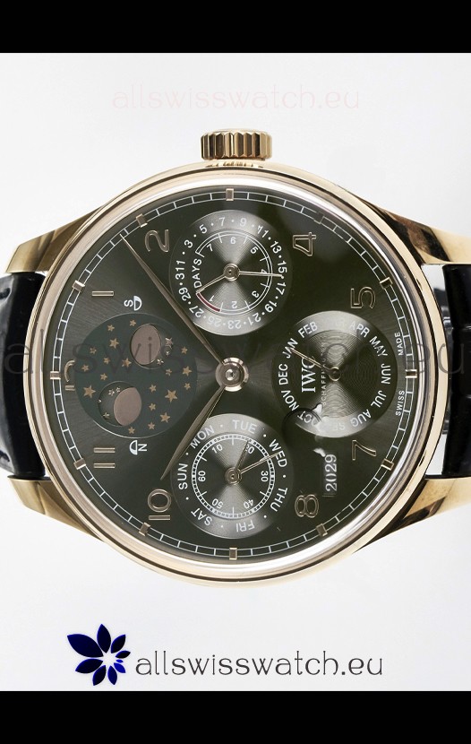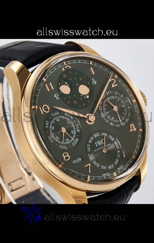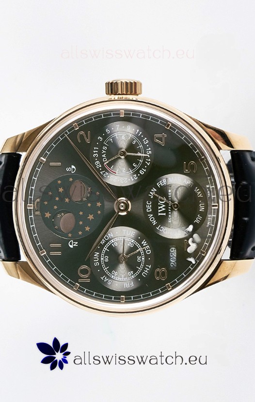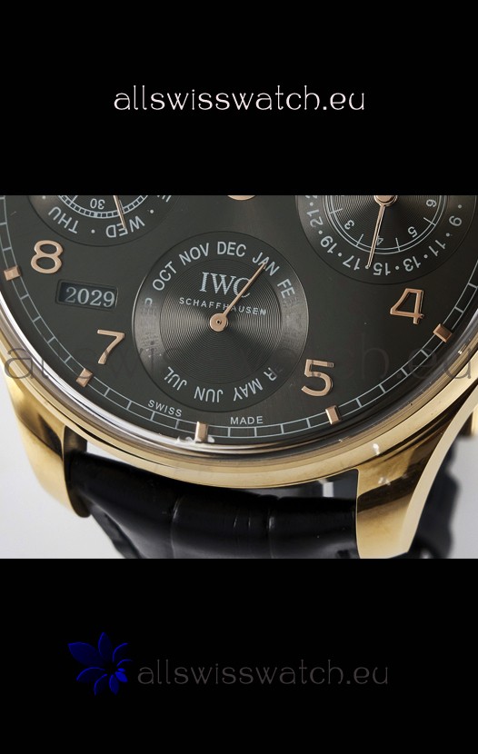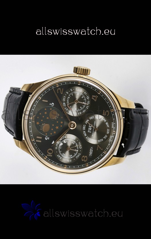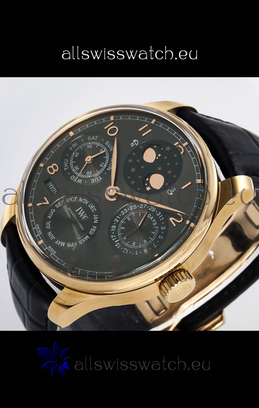 You're reviewing: IWC Super Clone Portuguese Perpetual Calendar Rose Gold Grey Dial Replica Watch