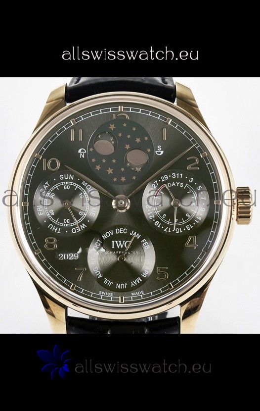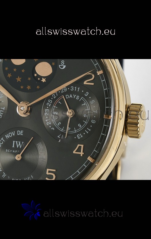 IWC Super Clone Portuguese Perpetual Calendar Rose Gold Grey Dial Replica Watch