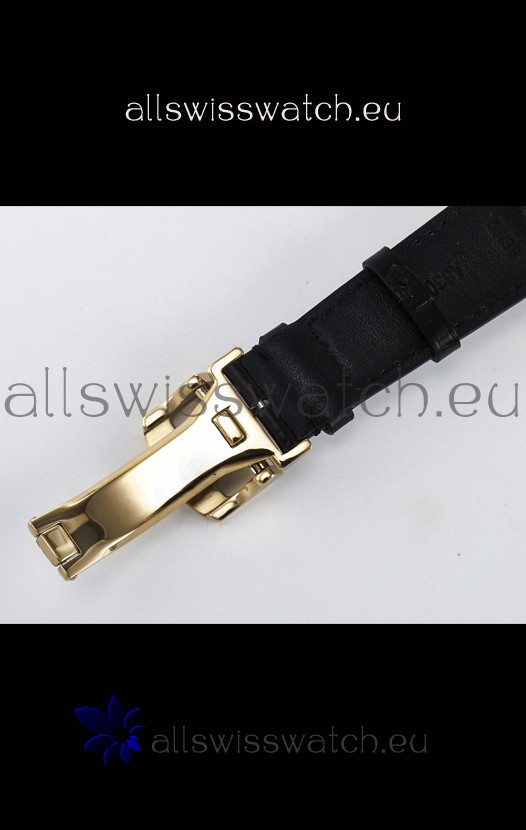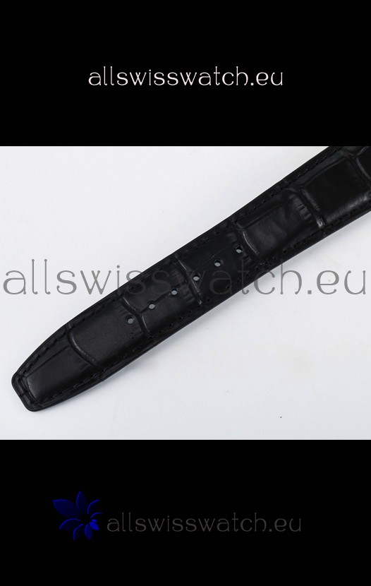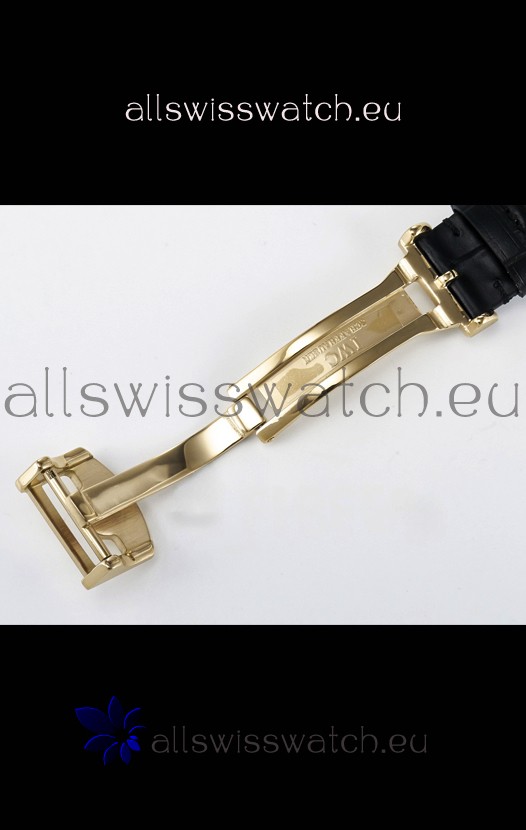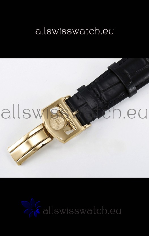 Genuine Leather Strap with IWC Markings and Engravings with Tang 18K Rose Gold Plated Steel Buckle