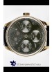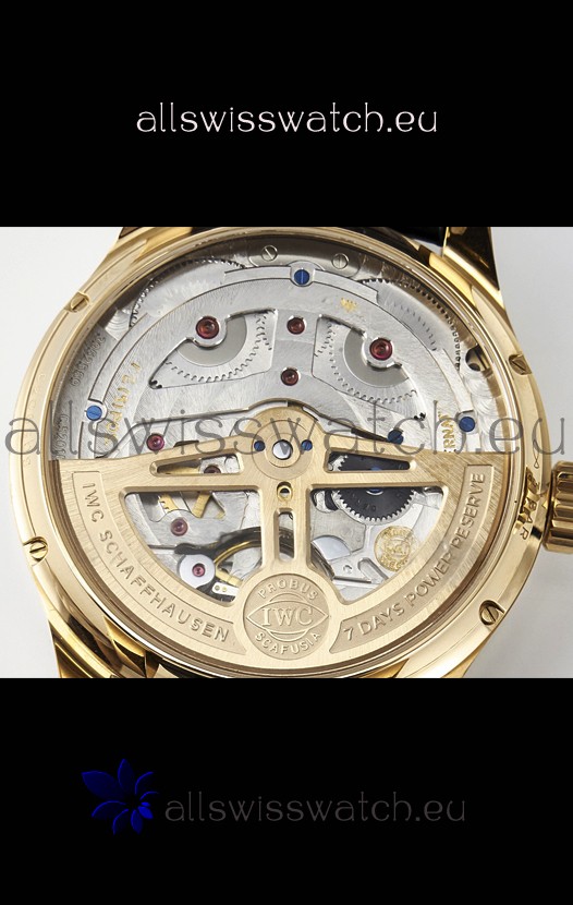 18K Rose Gold Plating on 904L Polished Solid Stainless Steel Case with IWC Markings and Engravings