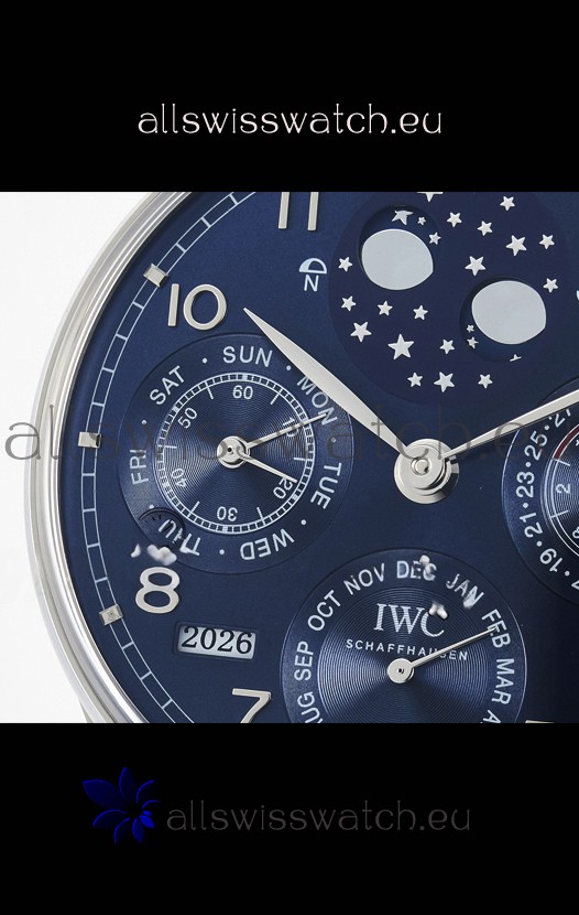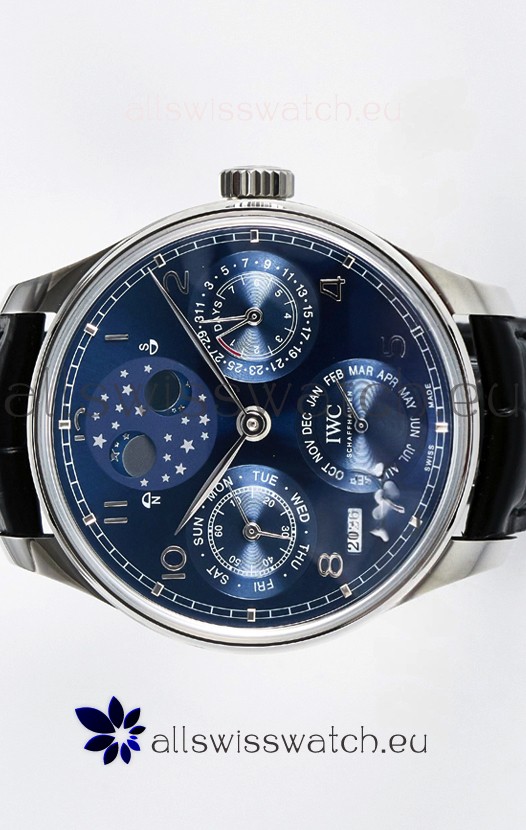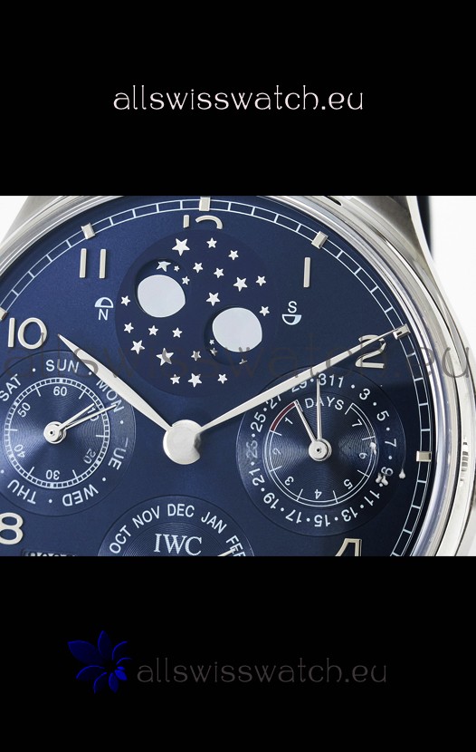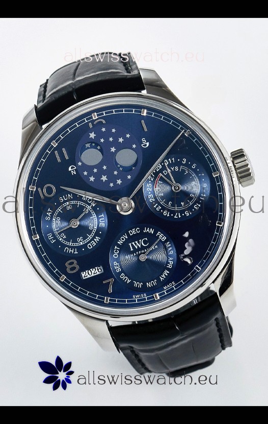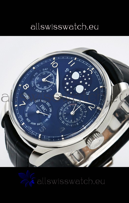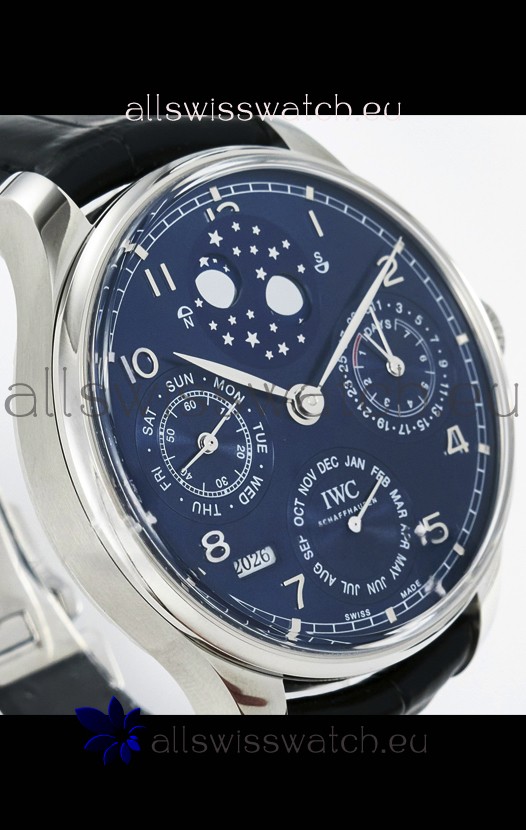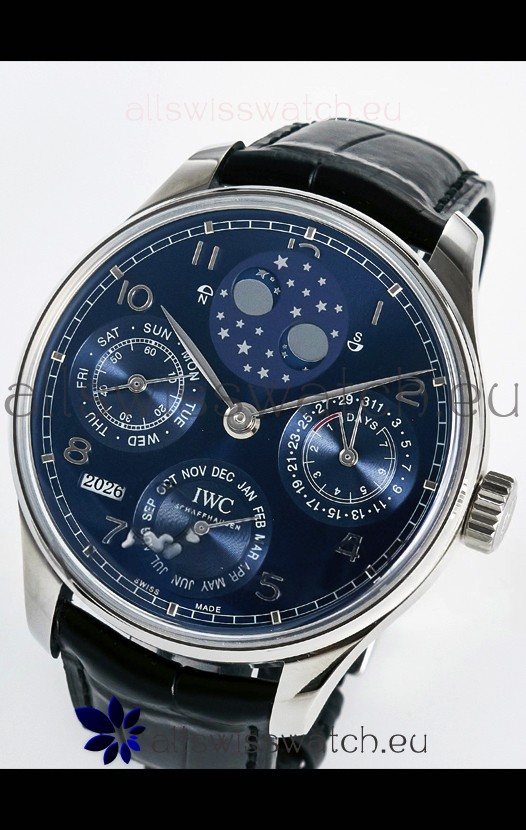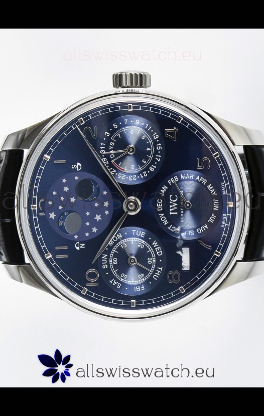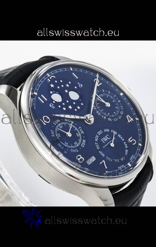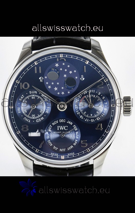 You're reviewing: IWC Super Clone Portuguese Perpetual Calendar Stainless Steel Blue Dial Replica Watch