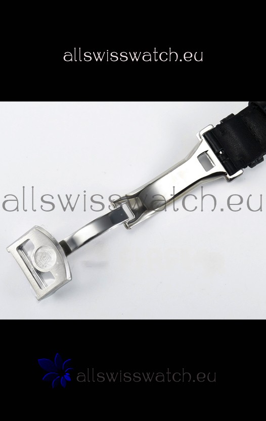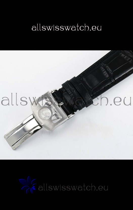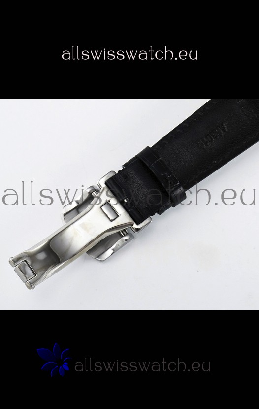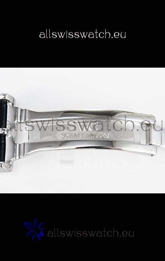 Genuine Leather Strap with IWC Markings and Engravings with Tang 18K Rose Gold Plated Steel Buckle