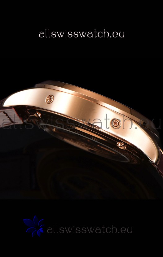 18K Rose Gold Plating on 904L Polished Stainless Steel Case with Open Case Back