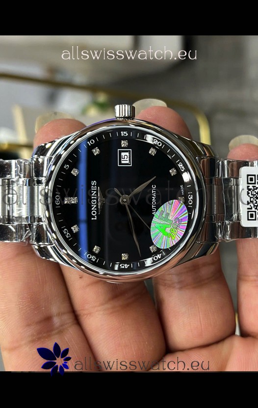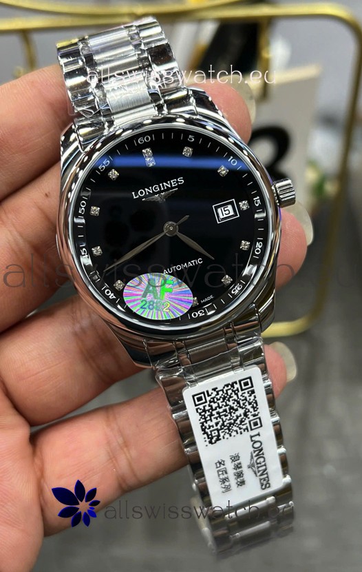 Longines Master Collection Automatic Moonphase Black Dial Swiss Replica Watch Steel Strap