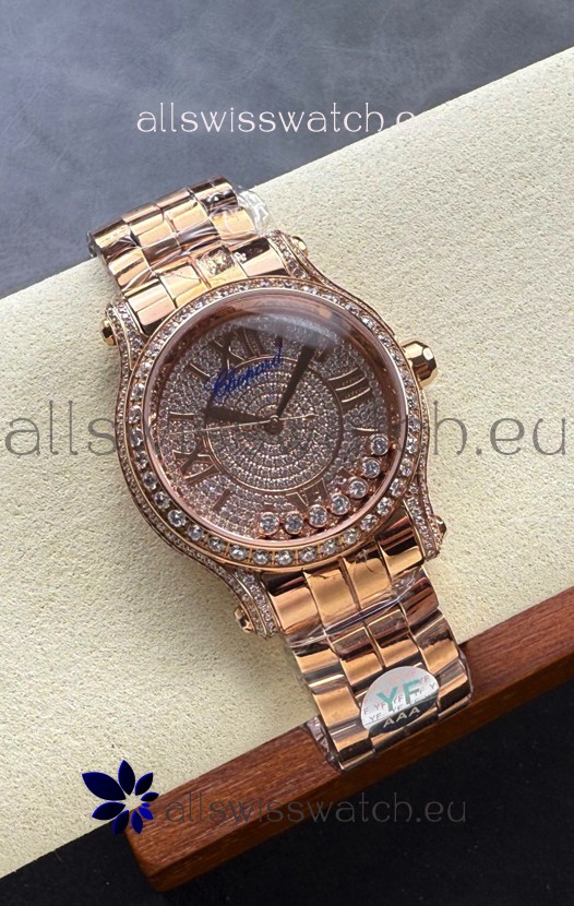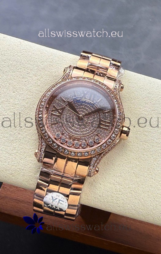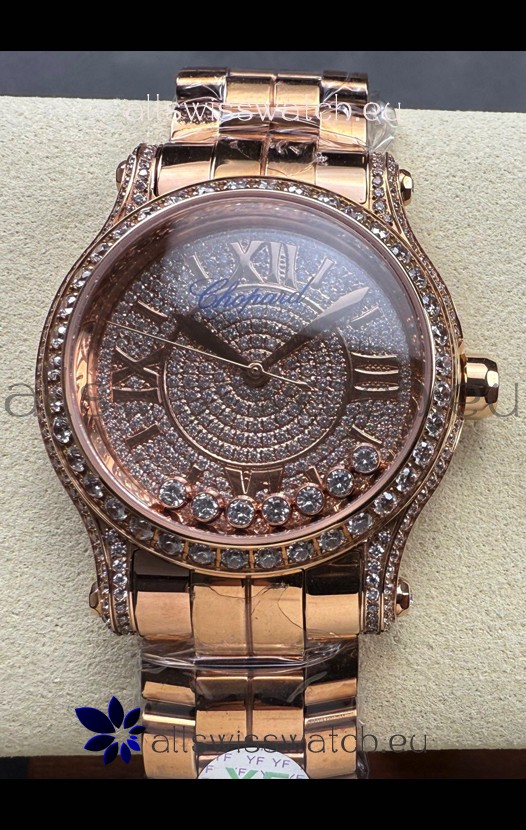 Chopard Happy Sport 1:1 Mirror Swiss Automatic Replica Watch 36MM in Rose Gold Casing Mossanites Dial