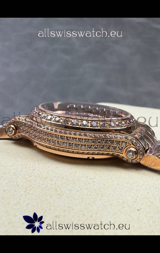 Chopard Happy Sport Super Clone Automatic Watch 36MM in Rose Gold Casing Mossanites Dial