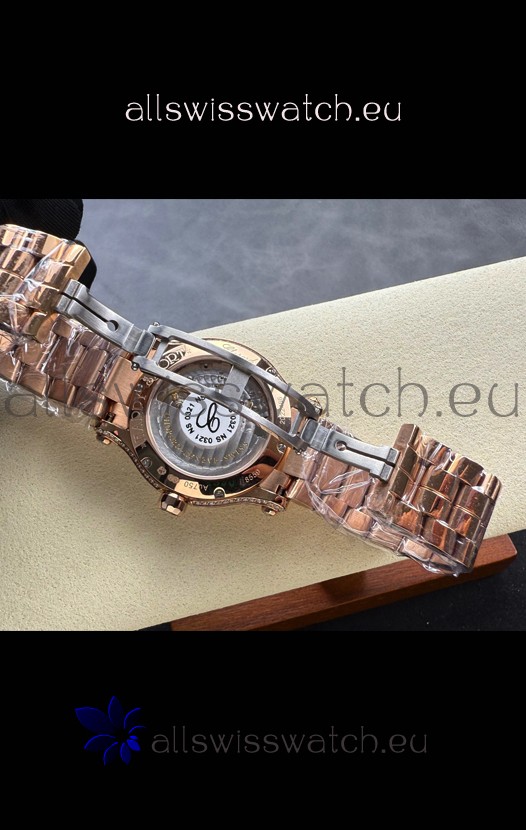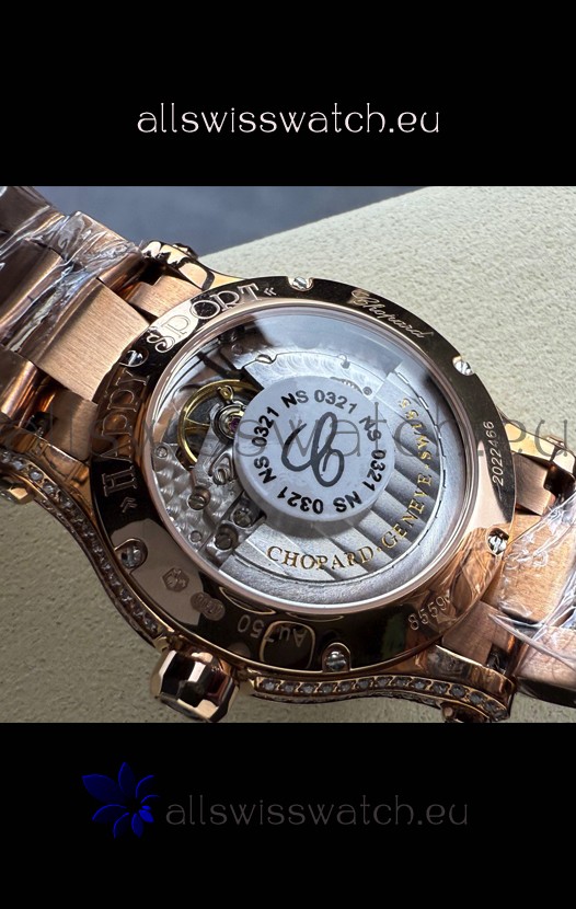 18K Rose Gold Plating on 904L Stainless Steel Casing with complete with Chopard Markings as per the Originals.