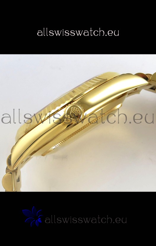 18K Yellow Gold Plating on 904L Stainless Steel New Design President Strap with Folding Clasps complete with Rolex Markings and Engravings