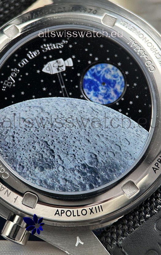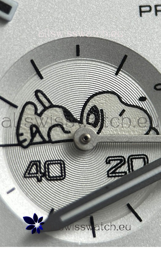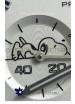 The Globe Located at the rear would rotate and complete one revolution per Minute, the Snoopy on Spaceship would rotate counter clockwise in conjunction to the Chronograph second hand once the Chronograph feature is activated.