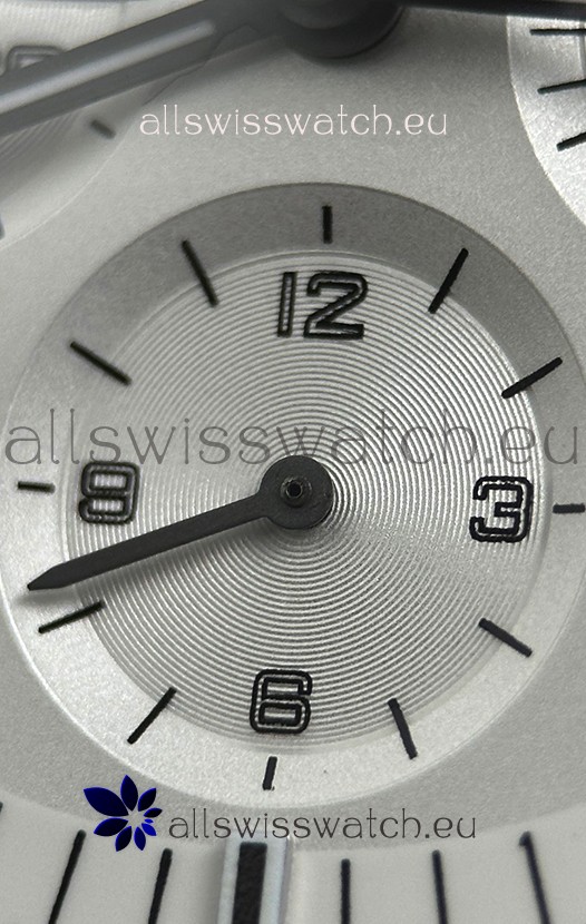 White Dial with 3 Functional Sub Dials. Sub dial at 6 O'clock moves along with the Hour Hand which is slightly different when compared with the originals