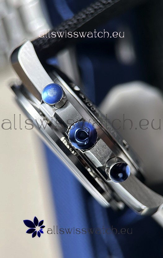 904L Solid Polished Stainless Steel Case with Blue Tachymeter Bezel .