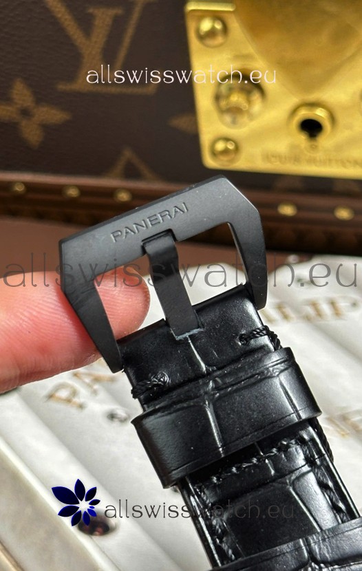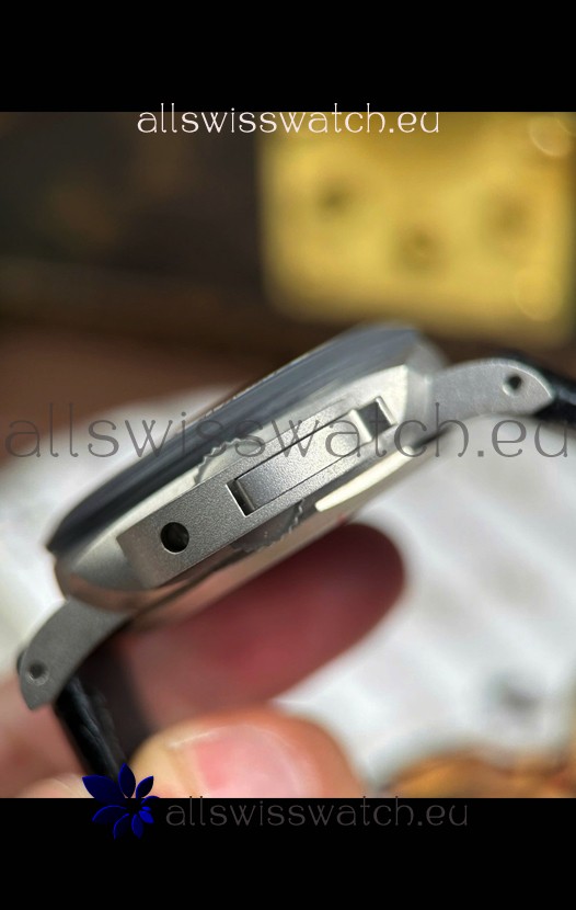 Genuine Swiss Modified 7750 movement Reassembled to resemble the P9010 Movement. Bridges and Rotor Decorated to resemble the Calibre 9010 Movement by Panerai