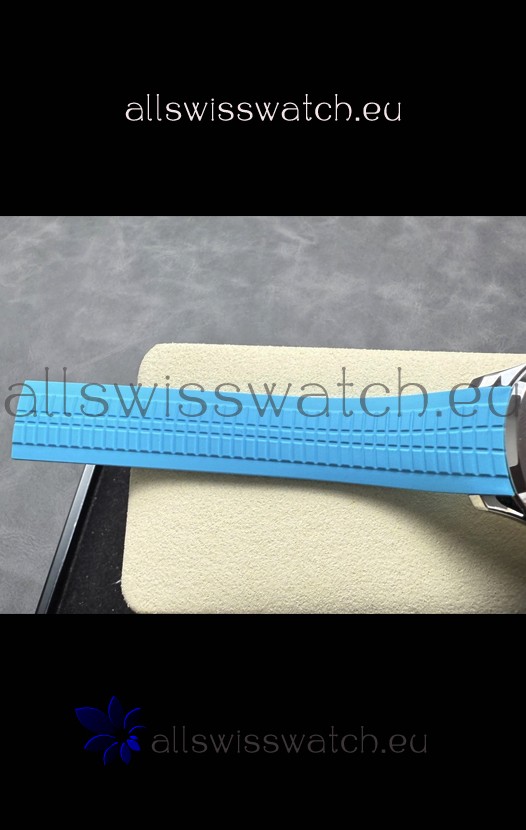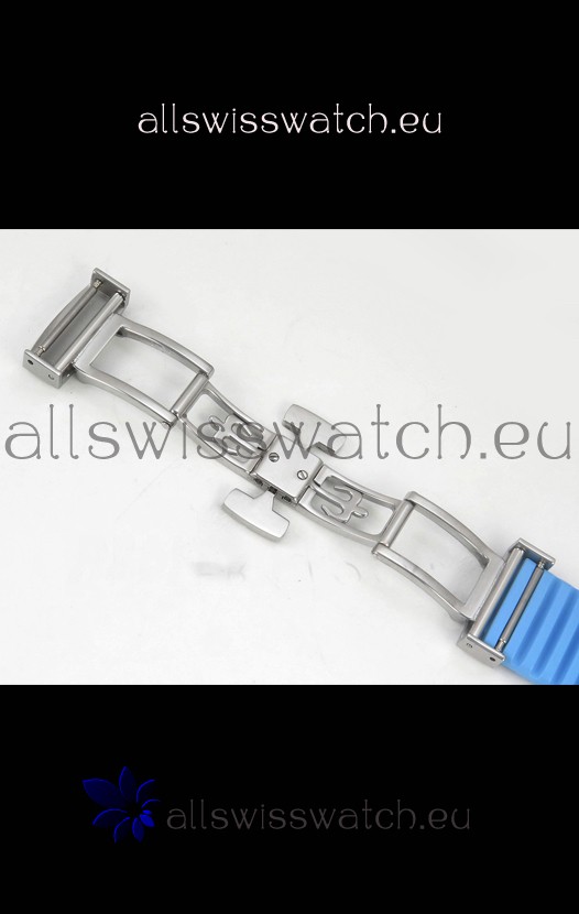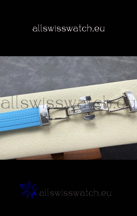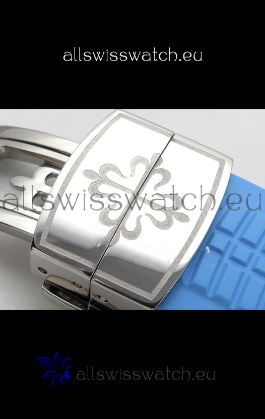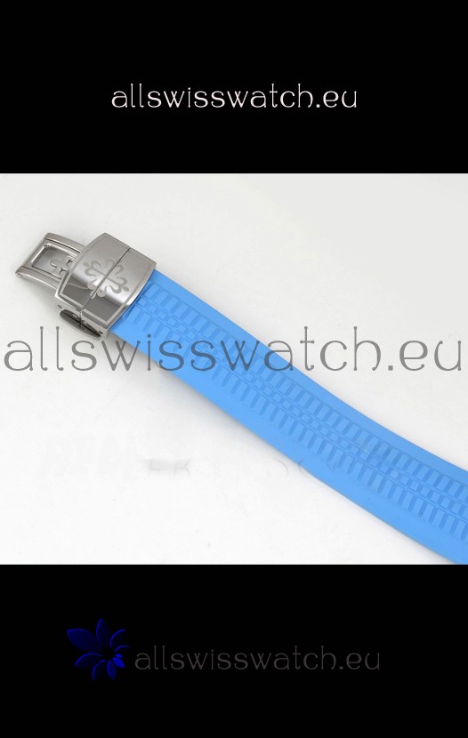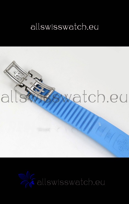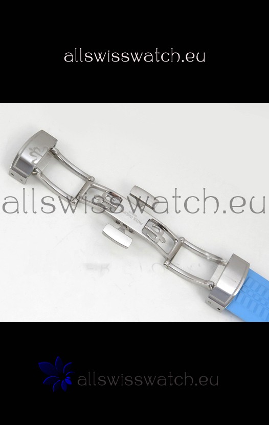 Curved Rubber Strap with Steel Folding Clasp complete with Patek Philippe Markings. A Highly Updated Clasps for this series with much more accurate markings/engravings.