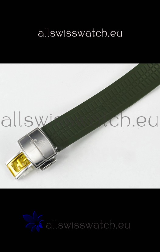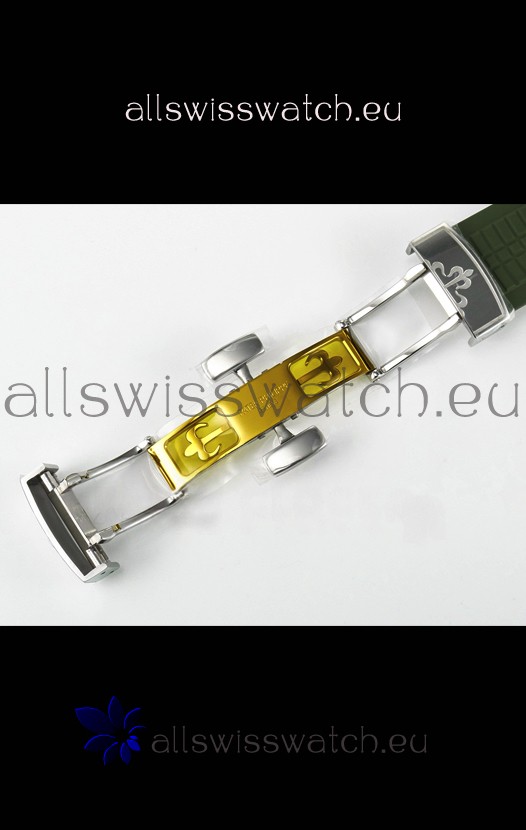 Green Curved Rubber Strap with Steel Folding Clasp complete with Patek Philippe Markings. A Highly Updated Clasps for this series with much more accurate markings/engravings.
