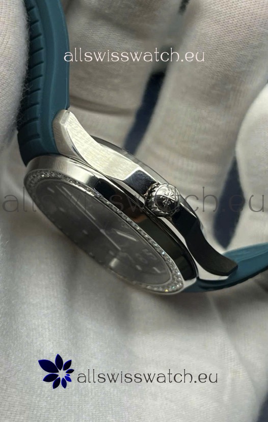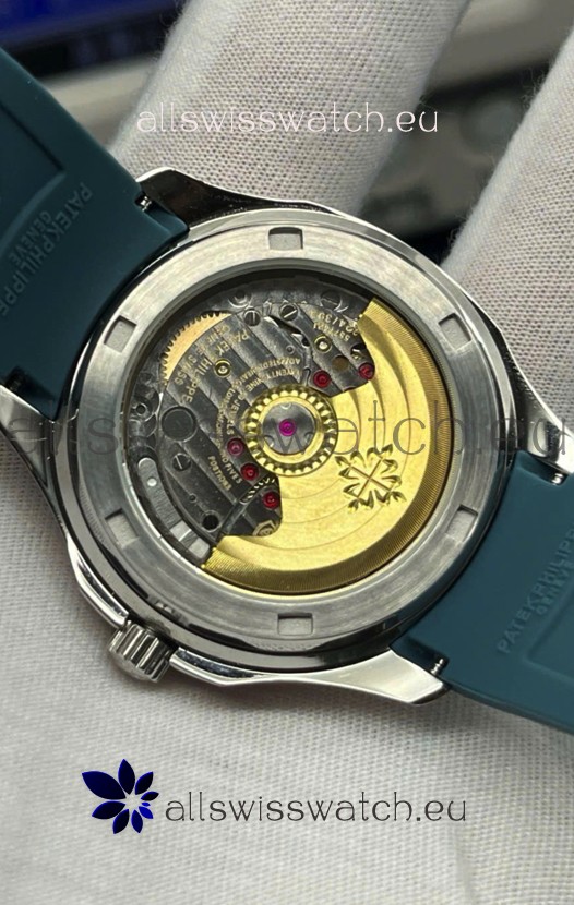 Genuine Swiss 9015 Movement assembled to Resemble the Authentic Patek Philippe PP 240 Calibre Style Movement. Updated Rotor, Bridged and Engravings on Movement with Rose Gold Plated Patek Philippe Stamped Rotor