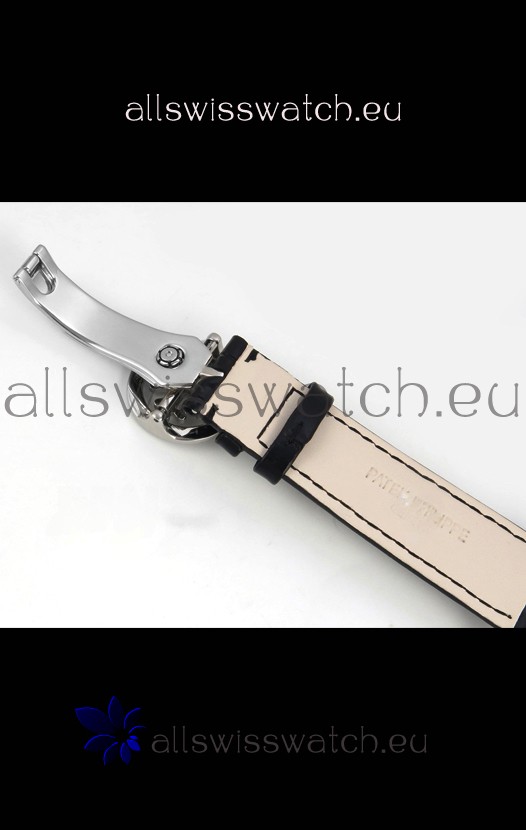 Genuine Leather Strap with Steel Folding Clasp complete with Patek Philippe Markings.